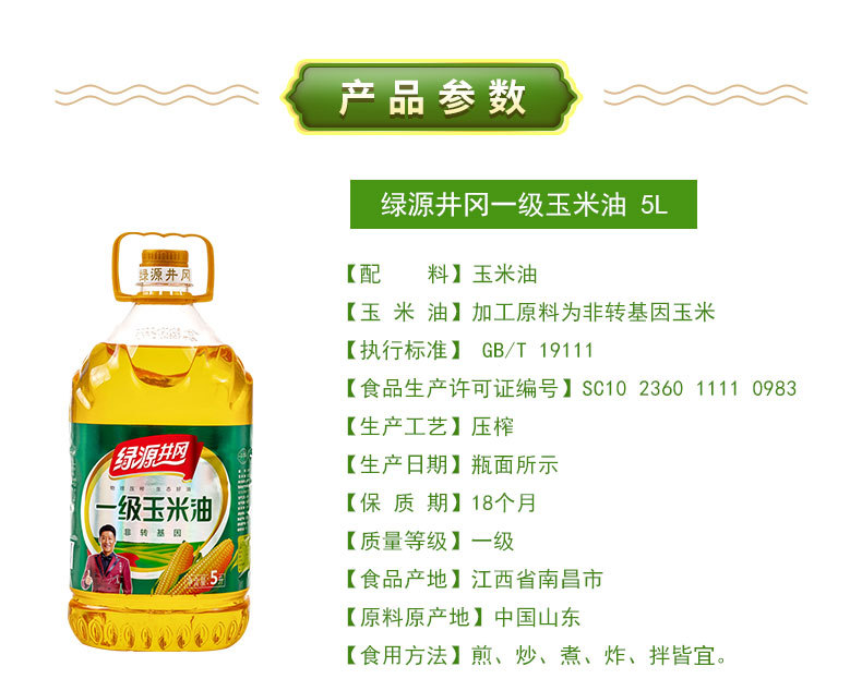 江西绿源油脂实业有限公司发布的绿源井冈 一级玉米油5L 物理压榨 厂家直销 批发 粮油 食用油图集库