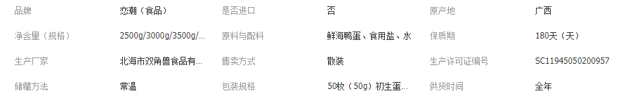 北海市回头客食品有限公司发布的北部湾恋潮海鸭蛋红树林鸭蛋咸鸭蛋流油一件代发中秋节礼品5060枚图集库