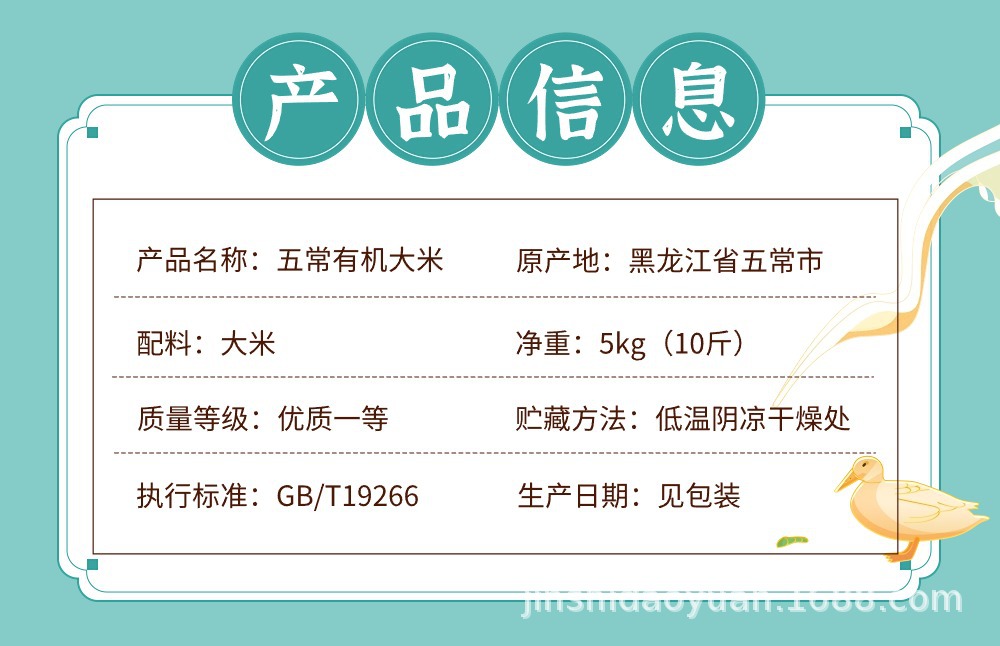 五常市金色田野食品有限公司发布的【华粮帝稻】五常有机大米5kg双层真空装原粮稻花香2号五 常原产地图集库