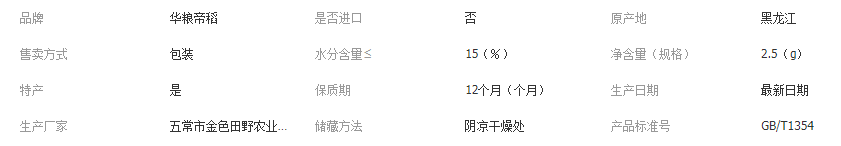 五常市金色田野食品有限公司发布的【华粮帝稻】五常香米2.5kg 东北大米 圆粒米真空装 一件 代发包邮图集库