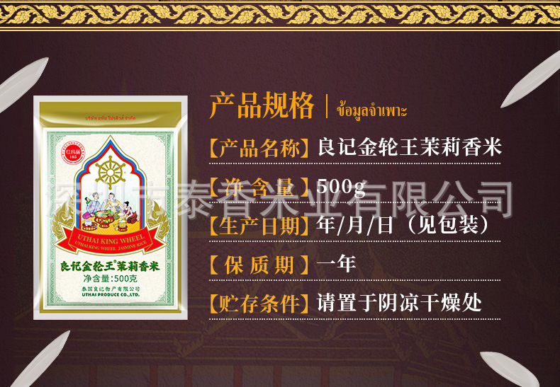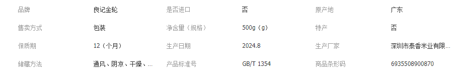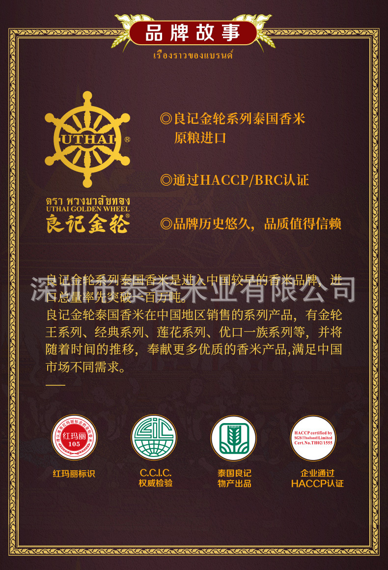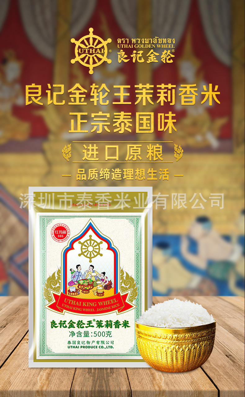 深圳市泰香米业有限公司发布的【2024新米】良记金轮 金轮王系列500g泰国原粮进口香米长粒米图集库