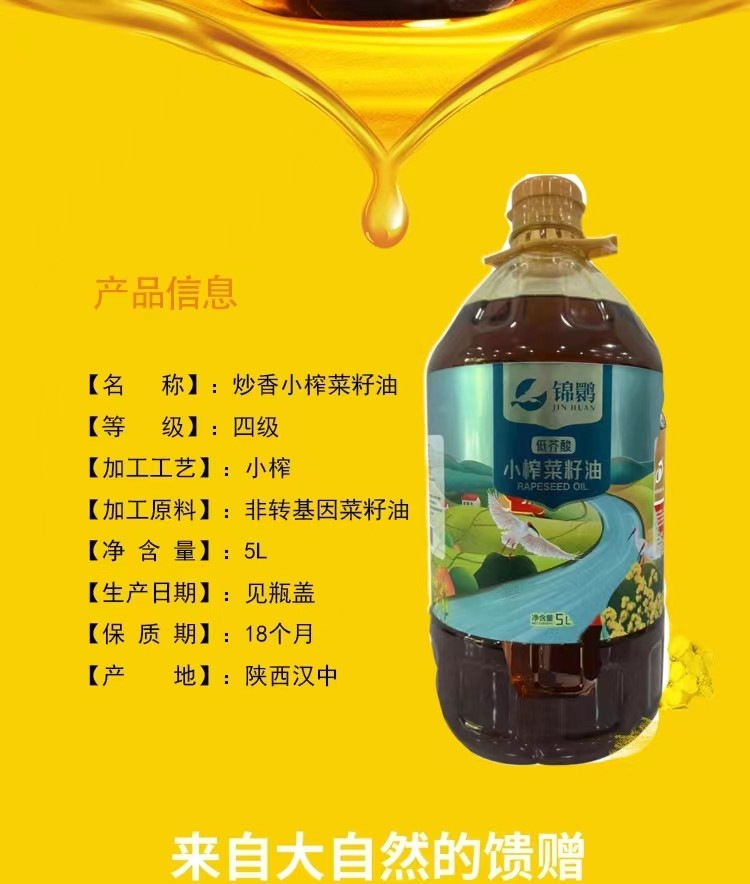陕西良科汉实业有限公司发布的新款菜籽油陕西汉中非转基因菜籽油5L农家小榨炒香物理压榨图集库