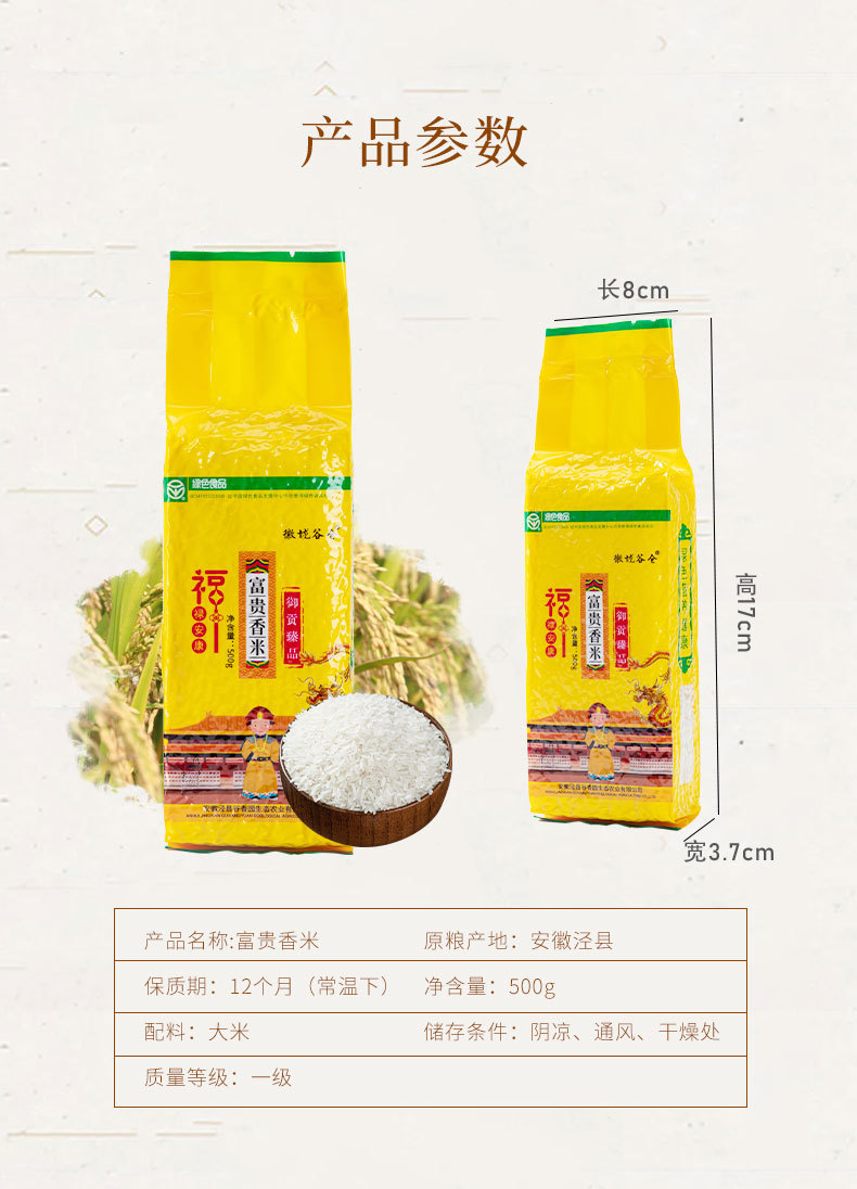 安徽泾县谷香园生态农业开发有限公司发布的富贵香米500克1斤大米真空礼品包装丝苗米保险房产加油站 活动批发图集库