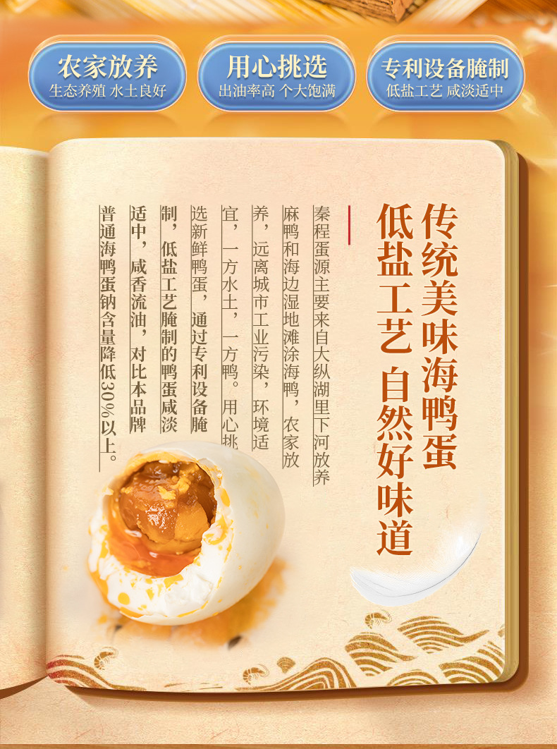 盐城市秦程食品有限公司发布的低盐工艺 放养海鸭蛋 海鸭咸蛋10枚装礼盒装 端午馈赠 流油海鸭蛋图集库