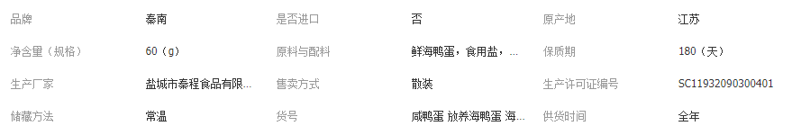 盐城市秦程食品有限公司发布的咸鸭蛋 放养海鸭蛋 海鸭咸蛋烤海鸭蛋 黄海之滨 海鸭咸蛋按个批发图集库