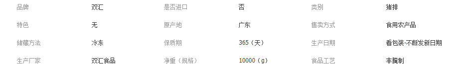 广州俊元冷冻食品有限公司发布的双汇猪肋排 20斤/箱 广州批发冰鲜猪肋排 精猪排骨冷冻优质猪大排图集库