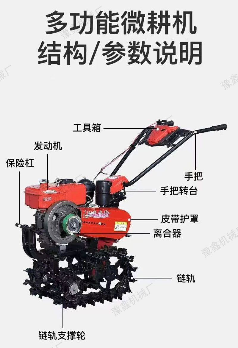 宁阳豫鑫机械厂(个体工商户)发布的小红牛农用微耕机小型履带式开荒链轨犁地机汽油柴油履带式旋耕机图集库