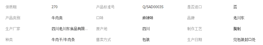 四川老川东食品有限公司发布的四川特产老川东麻辣牛肉干条50g休闲零食超市小吃零售批发图集库