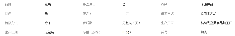 临朐县嘉晟食品加工厂发布的山东厂家批发鹅头新鲜冷冻酒店食材 农家散养生鲜冷冻鹅头图集库