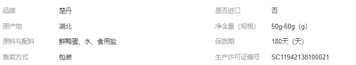 湖北楚丹禽业有限公司发布的楚丹烤鸭蛋颗颗爆油口感绵密多50g-60g多规格可选图集库