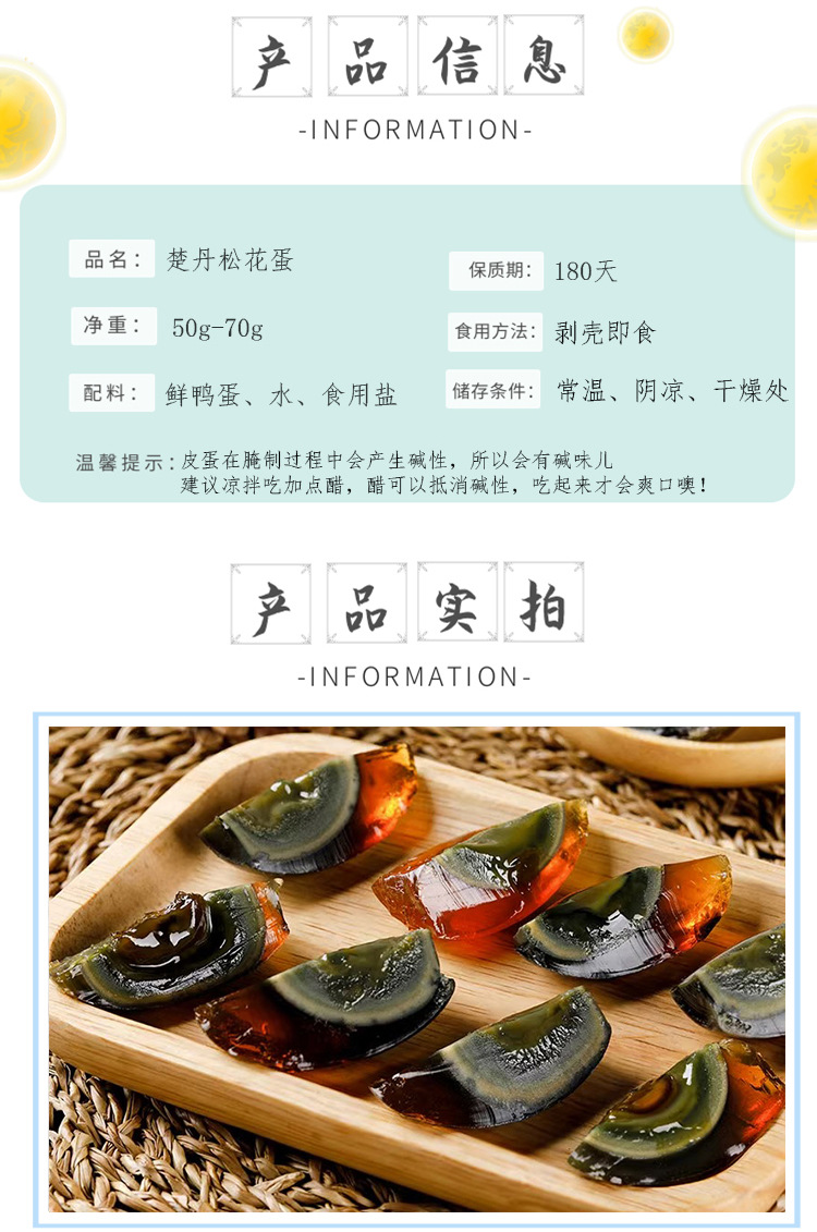 湖北楚丹禽业有限公司发布的楚丹松花大蛋多规格皮蛋流心鲜美工厂直销无铅工艺不涩不麻醇香图集库