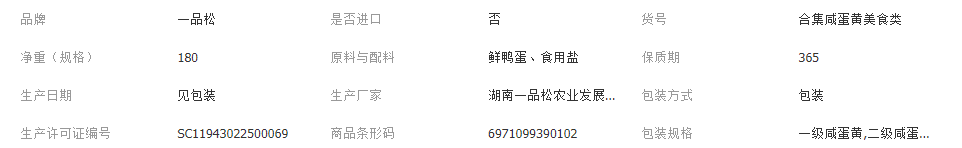 湖南一品松农业发展股份有限公司发布的现货红太阳咸蛋黄20粒美食专用大中小咸鸭蛋黄烘培原料厂家图集库