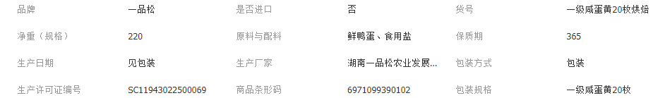 湖南一品松农业发展股份有限公司发布的一品松精选一级咸鸭蛋黄真空包装烘焙食品红心咸鸭蛋黄大号咸蛋黄图集库