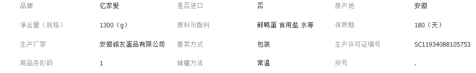 安徽诚友蛋品有限公司发布的厂家批发咸鸭蛋 亿家爱牌 起沙流油 咸淡适中 65克20枚图集库