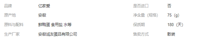 安徽诚友蛋品有限公司发布的厂家批发咸鸭蛋 亿家爱牌农家咸鸭蛋农家散养鸭蛋流油75g样品图集库