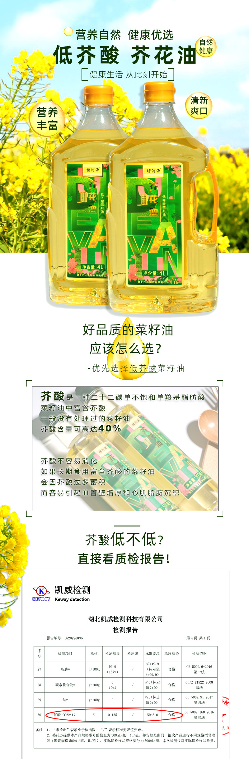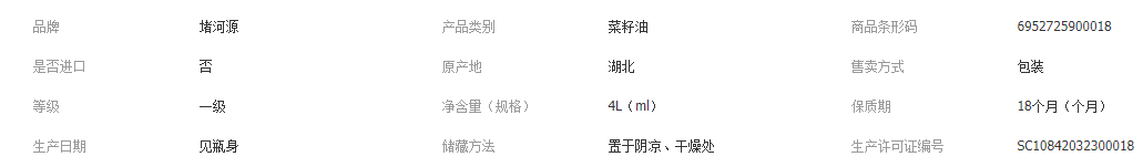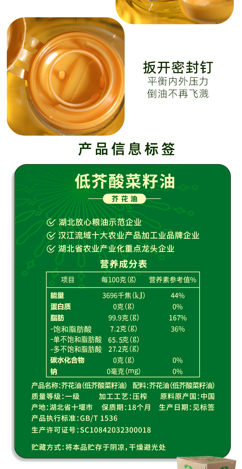 湖北省粮油集团(武汉)有限公司发布的堵河源低芥酸一级食用油物理压榨芥花油植物油菜籽油4L工厂直发图集库