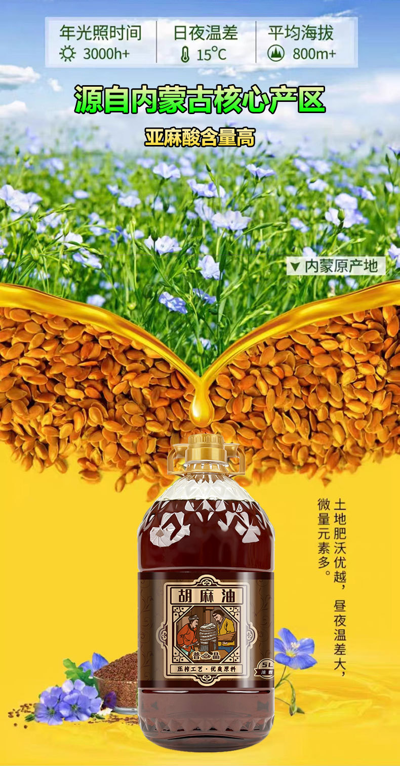 东河区托蒙特产中心(个体工商户)发布的胡麻油厂家5升 内蒙5l 鲜榨正品的价格胡麻籽黄金亚麻籽 亚麻籽油图集库
