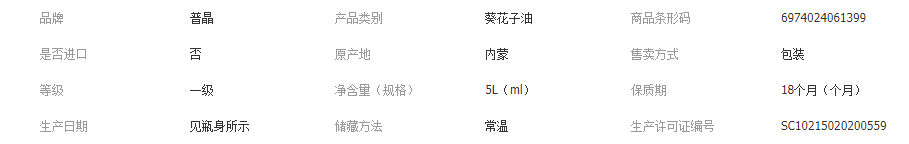 东河区托蒙特产中心(个体工商户)发布的普晶特制一级葵花籽油 5升餐饮家用瓜子油物理炸机食用油批犮直发图集库