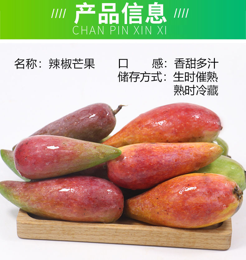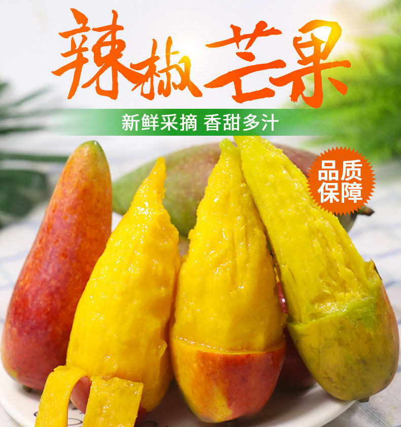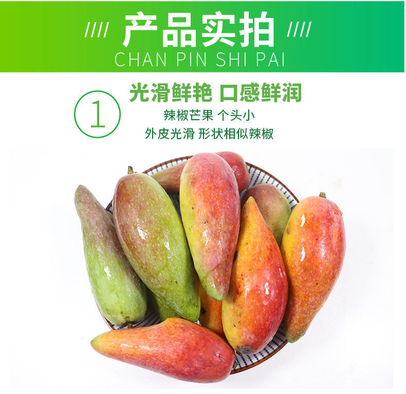 武汉市硚口区蹬耶商贸行(个体工商户)发布的辣椒芒海南新鲜5斤当季现摘热带芒果孕妇水果网红牙签小芒果1斤图集库