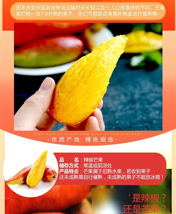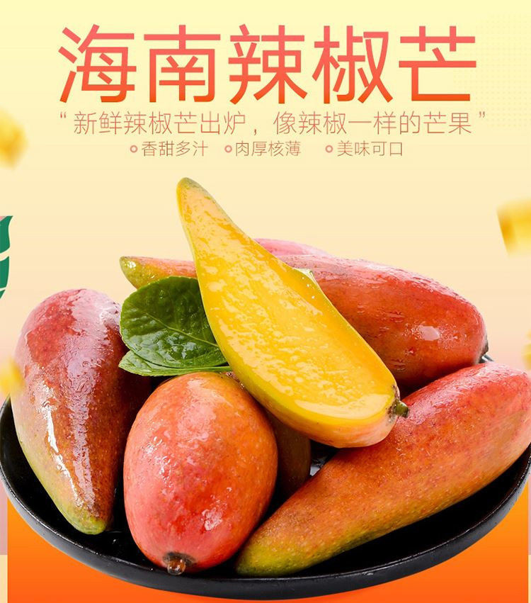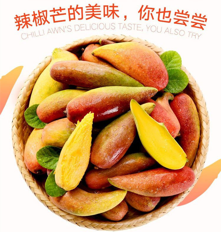 武汉市硚口区蹬耶商贸行(个体工商户)发布的辣椒芒芒果海南新鲜水果牙签现摘尖椒芒果手指2-10斤装批发包邮图集库