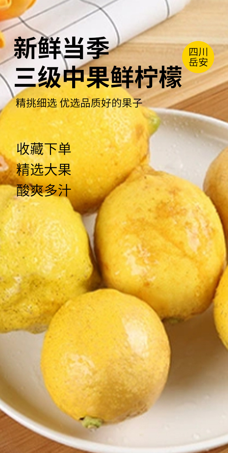 安岳县欣芮柠檬经营部发布的新鲜正宗安岳产地柠檬中果皮薄多汁现摘现发三级瑕疵果黄柠檬批发图集库