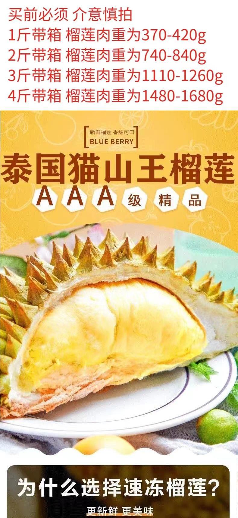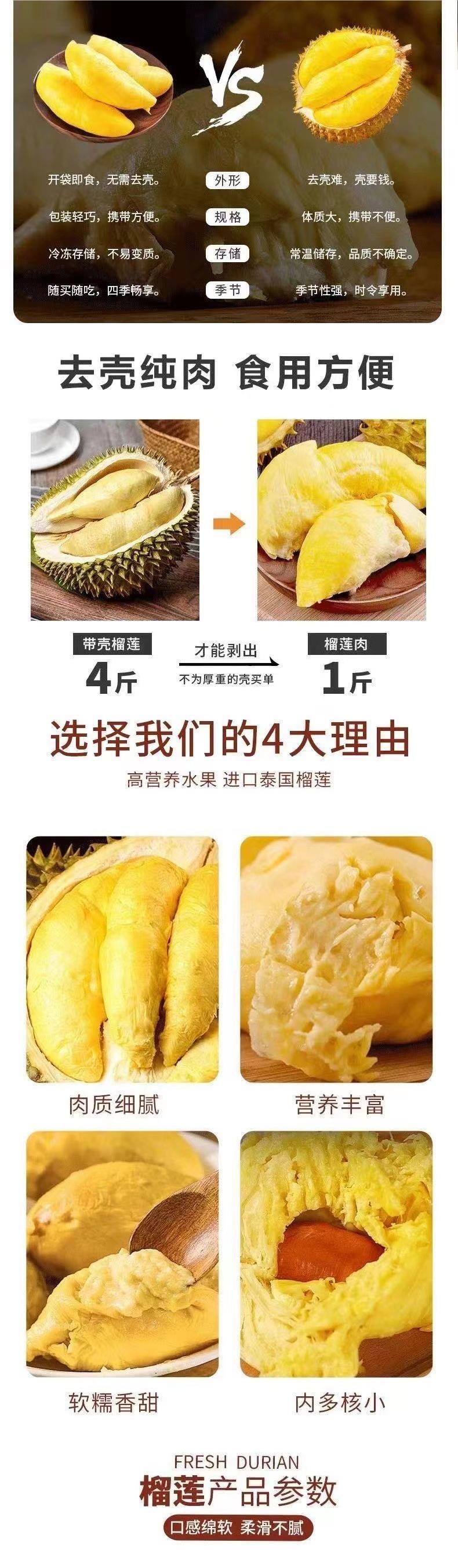 武汉市东西湖区荣禾商贸商行(个体工商户)发布的榴莲肉进口猫山王果肉当季有核无壳金枕泰国榴莲新鲜水果纯肉包邮图集库