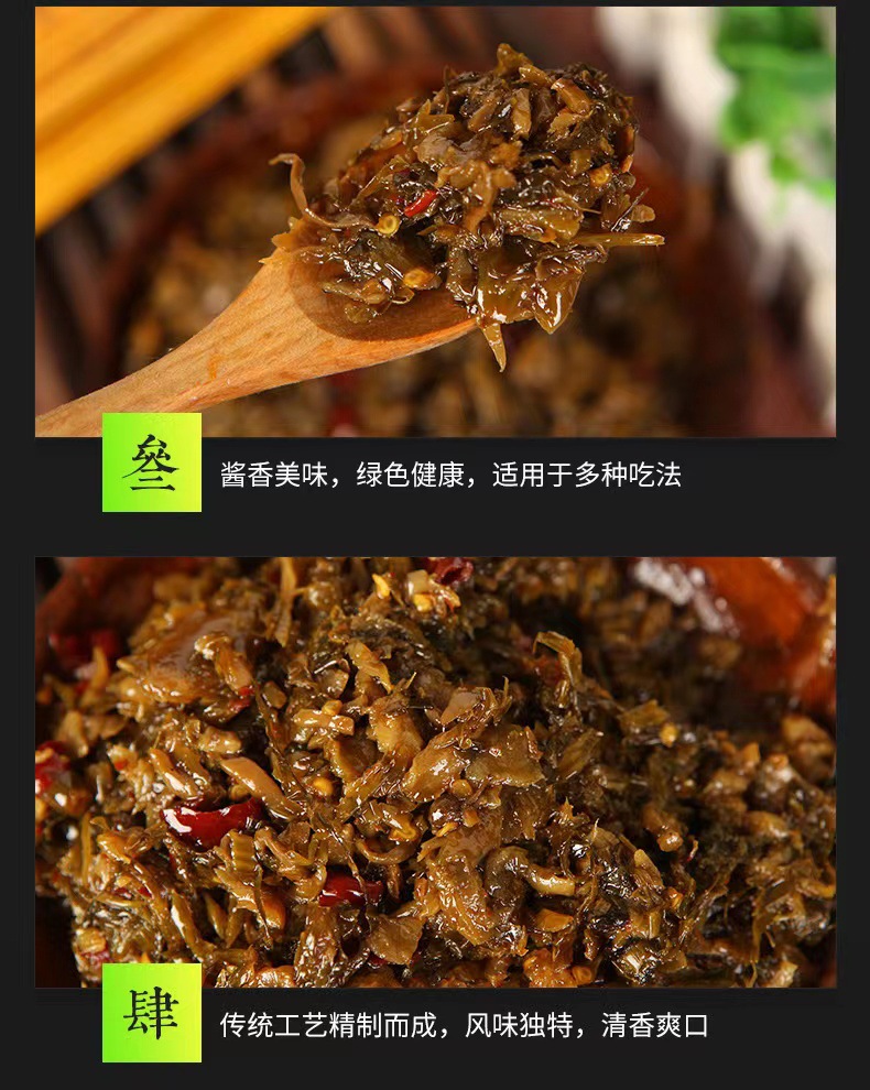 徐州蓝珀食用菌专业合作社发布的中芮辣椒炒雪菜300克×2包雪里蕻雪里传统红辣炒雪菜下饭菜即食五图集库