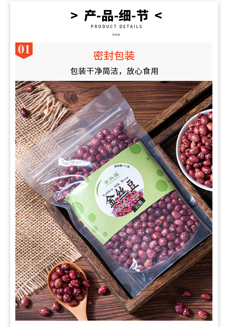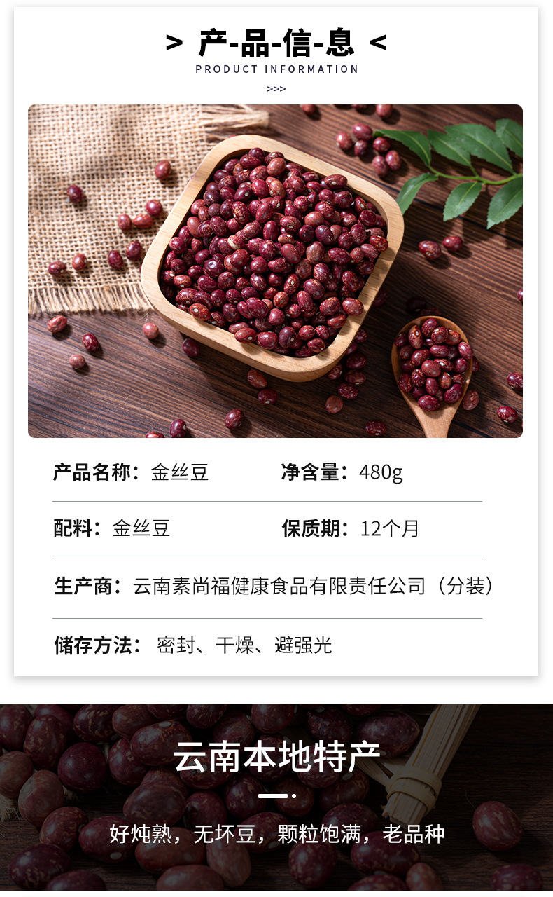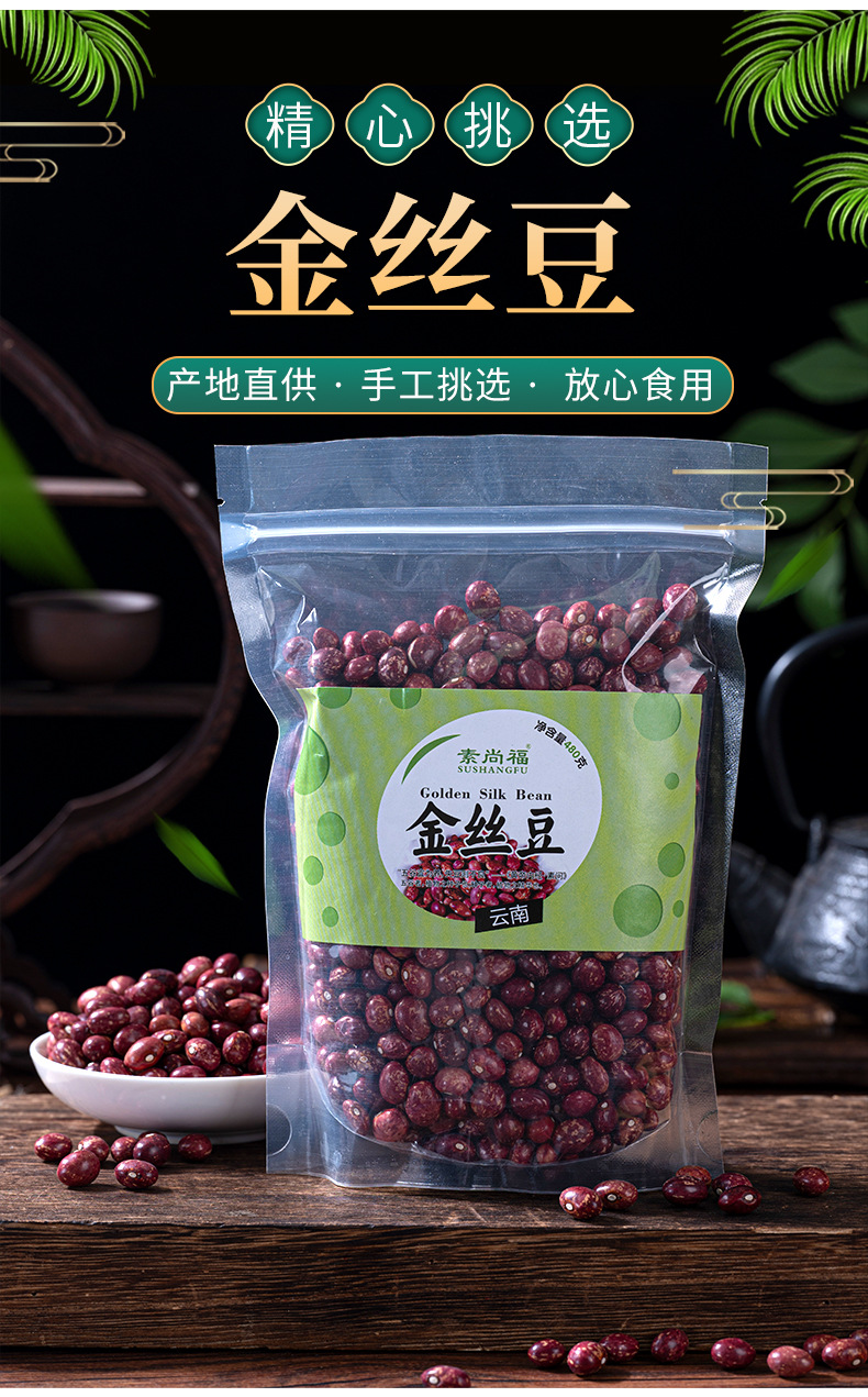 云南素尚福健康食品有限责任公司发布的云南金丝豆袋装厂家批发新货红花豆孔雀蛋芸豆杂粮饭豆四季金丝豆图集库