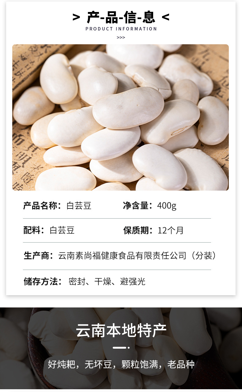 云南素尚福健康食品有限责任公司发布的白芸豆批发新货云南厂家直发白芸豆大白豆白云豆豆类杂粮粗粮现货图集库