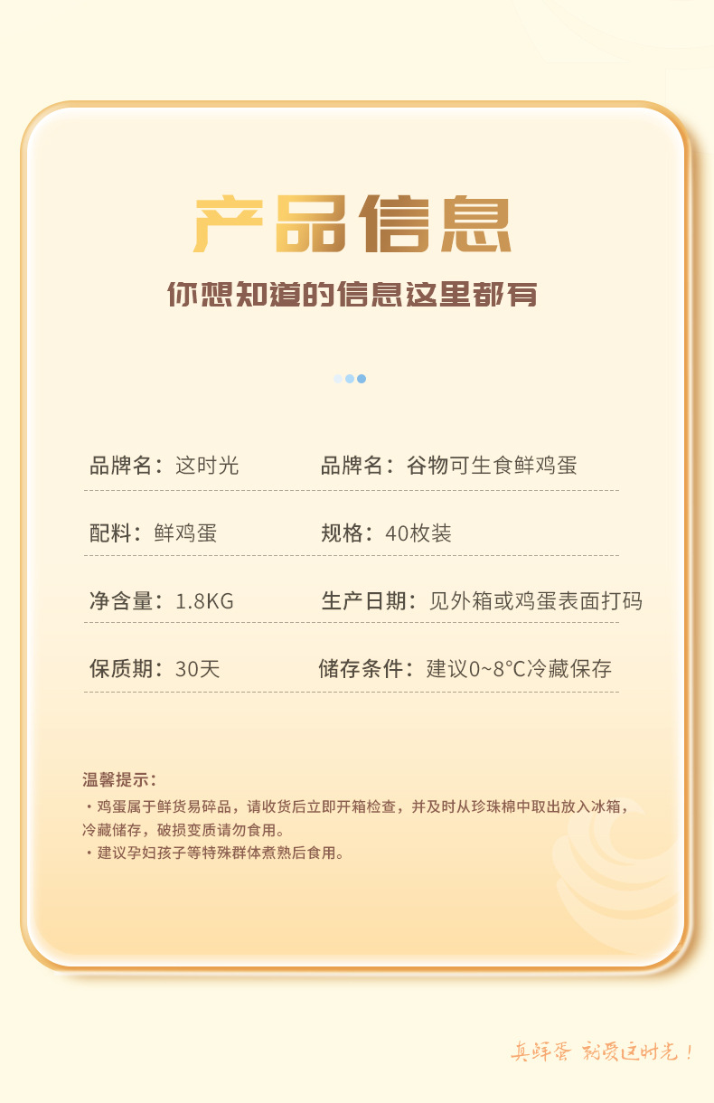 山东罗开佳知善农业科技有限公司发布的这时光谷物可生食新鲜鸡蛋无沙门氏菌无腥味无菌鸡蛋40枚礼盒整箱图集库