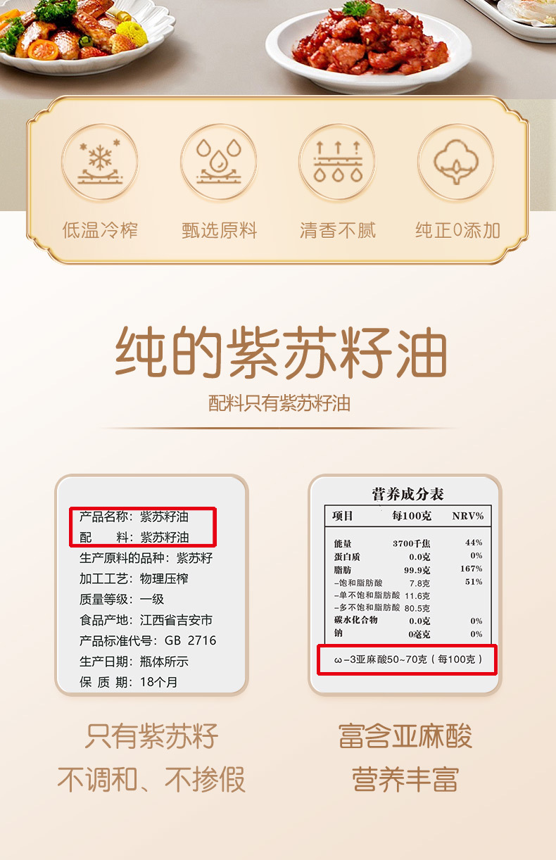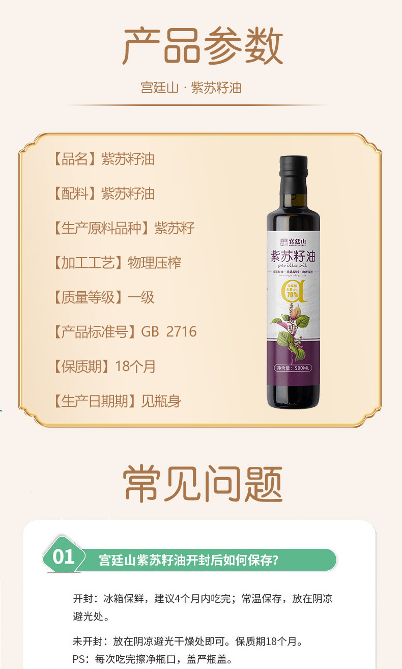 江西探花村农业发展有限公司发布的紫苏籽油纯正一级冷压榨苏子油500ml补亚麻酸健康食用油厂家直销图集库