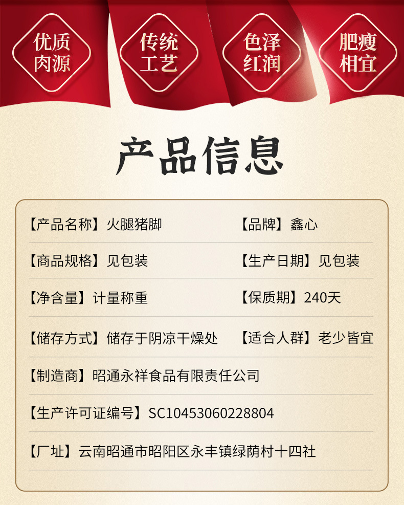 昭通永祥食品有限责任公司发布的云南宣威本地土猪火腿金钱火爪部分现切整支猪脚图集库