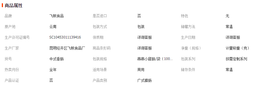 昆明经开区飞帆食品厂发布的昆明串串香肠广味小甜肠中式小腊肠甜味火锅串串烧烤商用独立包装图集库