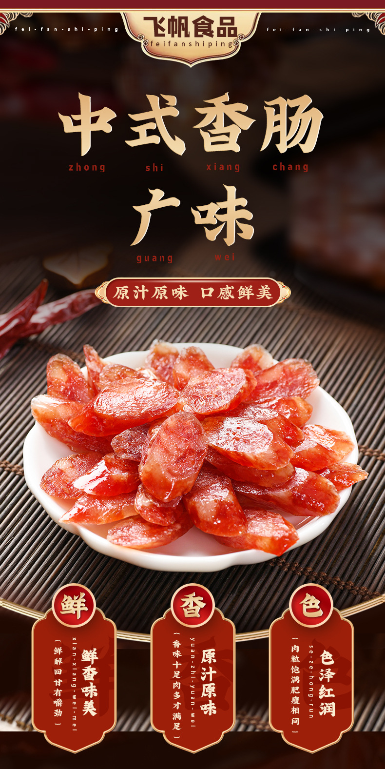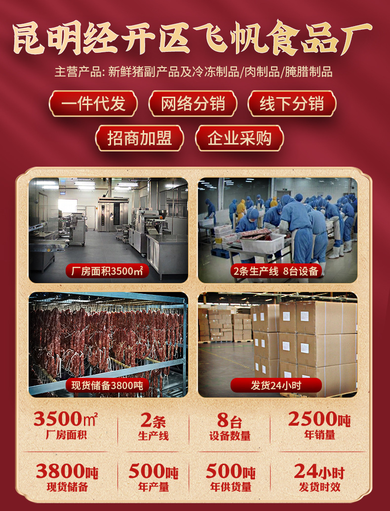 昆明经开区飞帆食品厂发布的昆明小甜肠广味香肠真空包装袋装腌腊类食品源头工厂云南厂家批发图集库