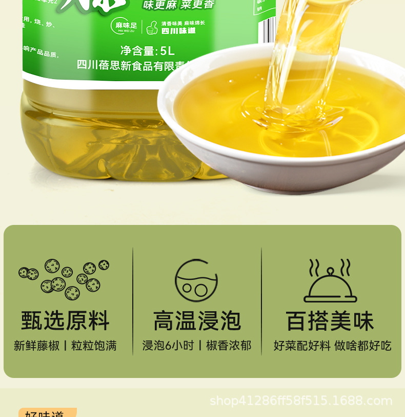 四川省愉心田食品有限责任公司发布的四川藤椒油商用洪雅特产麻油花椒油调味品拌菜米线椒麻鸡专用瓶装图集库