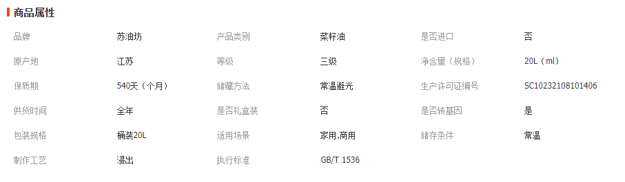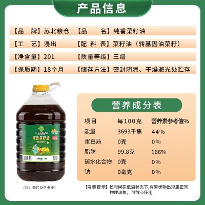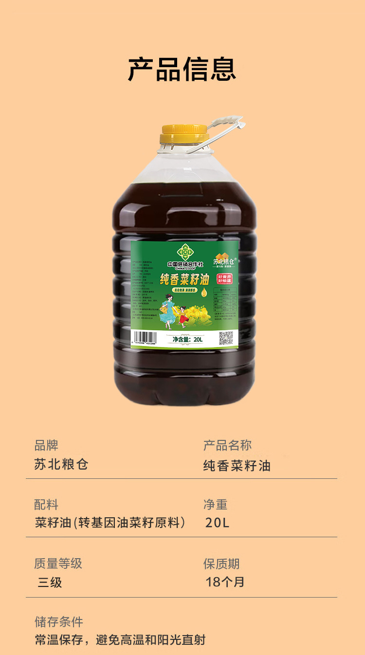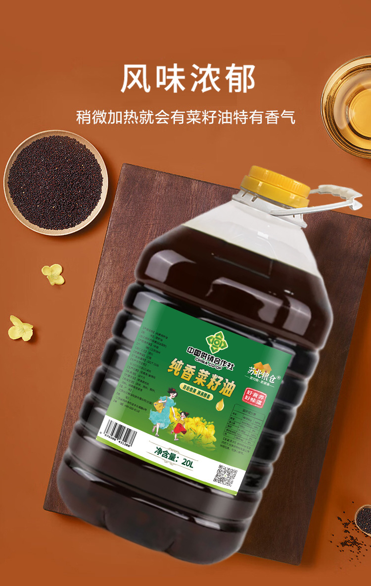 江苏长江粮油科技有限公司发布的苏油坊苏北粮仓菜籽油桶装20L餐饮装精选原料风味香浓图集库