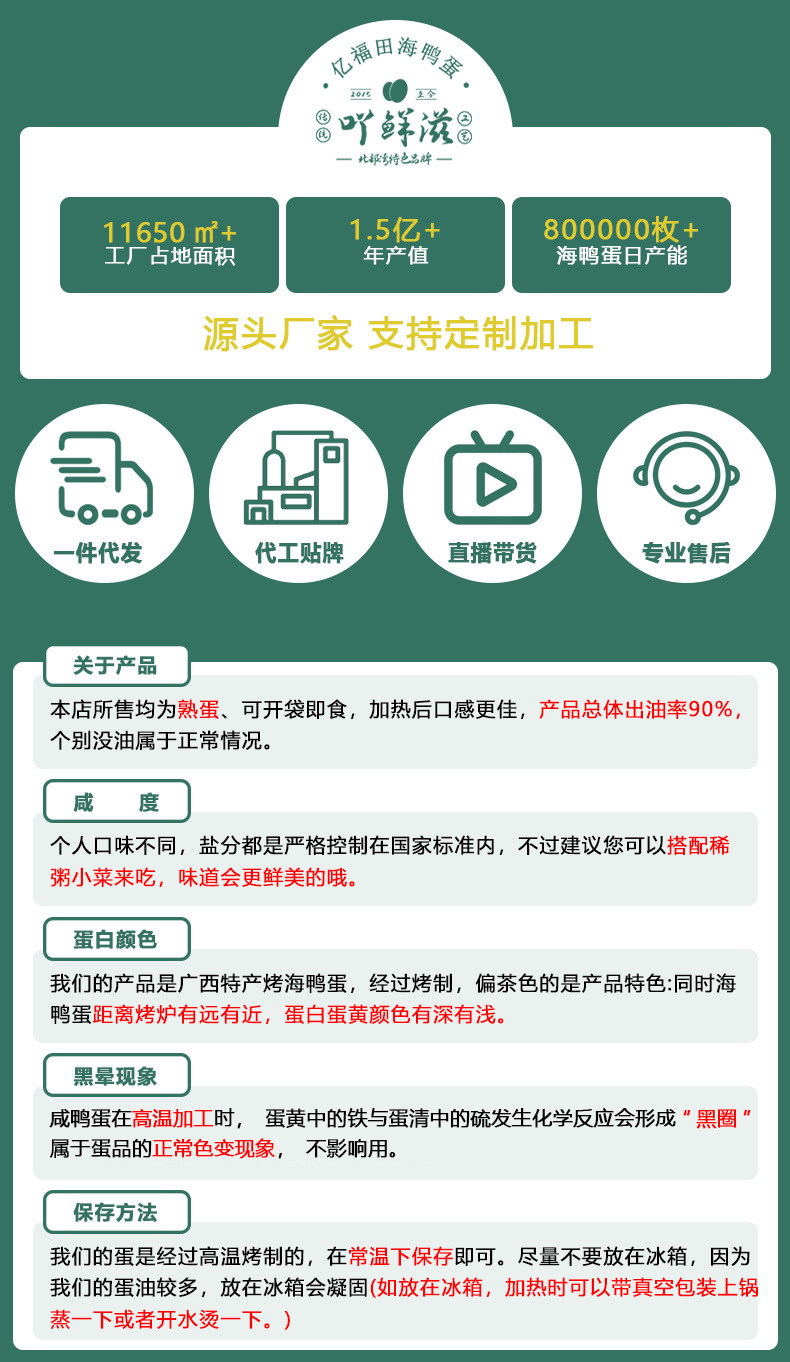 广西吖鲜滋食品有限公司发布的北部湾红树林烤海鸭咸蛋初生蛋50g/枚咸香流油咸鸭蛋工厂 现货批发图集库
