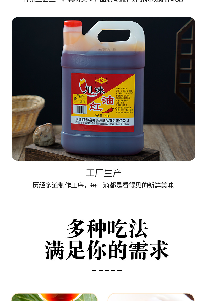 和县祥康调味品有限责任公司发布的只红不辣四川红油2.8L商用增红上色火锅凉皮串串烧烤小龙虾红油图集库