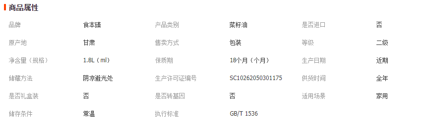天水星辰悦商贸有限公司发布的食本臻热榨菜籽油1.8L低芥酸非转基因压榨好油推荐植物油工厂直发图集库