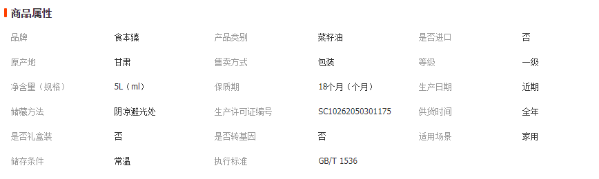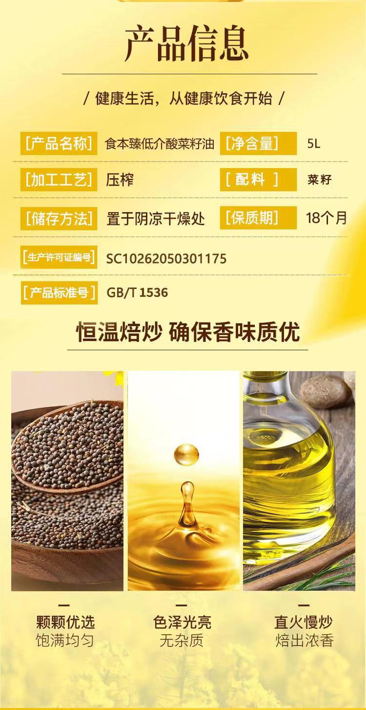 天水星辰悦商贸有限公司发布的食本臻菜籽油5L冷榨低芥酸非转基因古法好油推荐植物油图集库