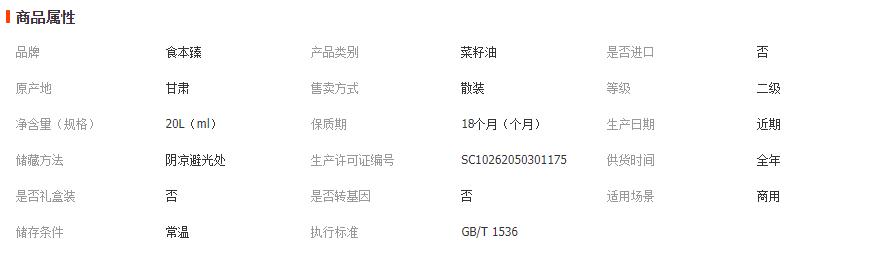 天水星辰悦商贸有限公司发布的食本臻热榨菜籽油20L低芥酸非转基因压榨好油推荐植物油工厂直发图集库