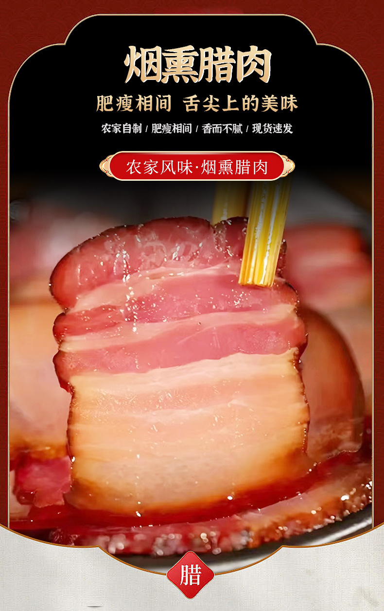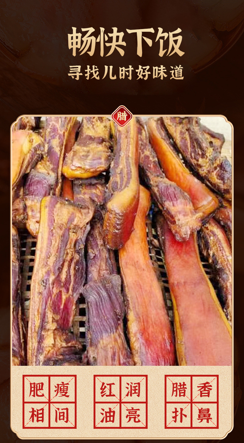 成都好农鲜土特产有限公司发布的四川腊肉正宗农家自制特产五花肉熏肉旗舰店柴火烟熏整块老腊肉图集库