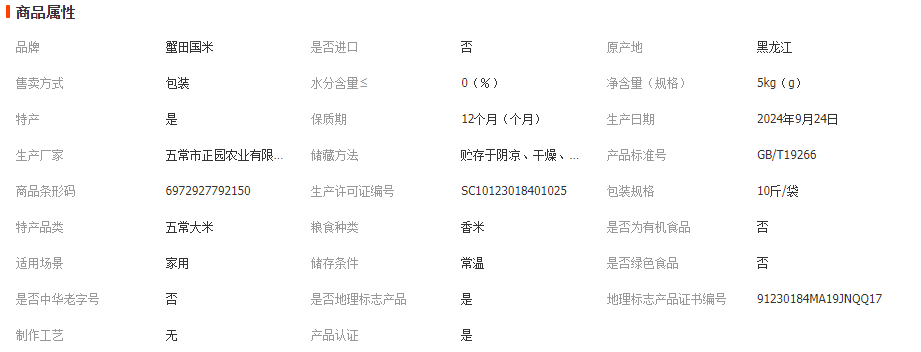 五常市蟹田国米业有限公司发布的官方追溯五常置田国米5kg田稻花香10斤新米东北黑龙江五常特产图集库