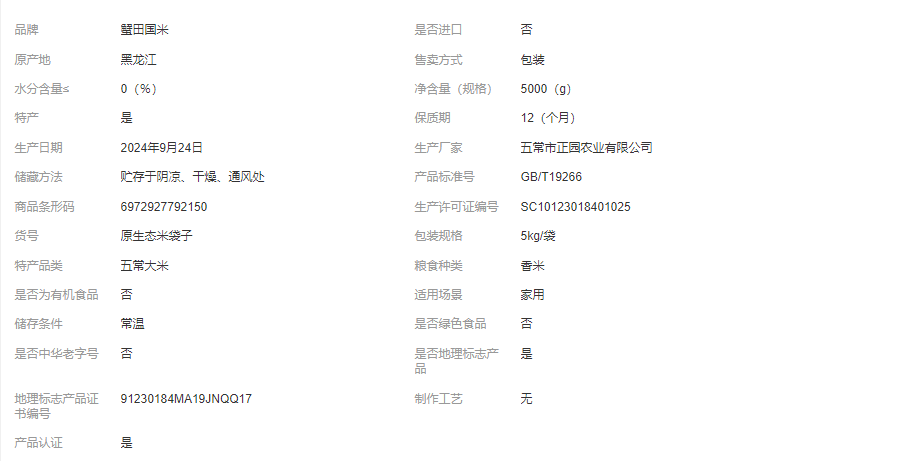 五常市蟹田国米业有限公司发布的官方追溯五常置田国米5kg田稻花香10斤新米东北黑龙江五常特产图集库