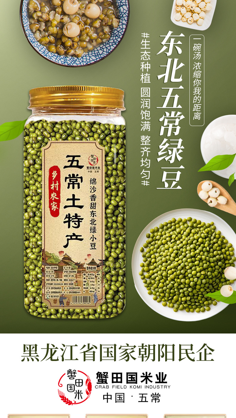 五常市蟹田国米业有限公司发布的东北农家黑龙江五常新货绿豆自产五谷杂粮煮粥发豆芽绿豆汤饼沙图集库