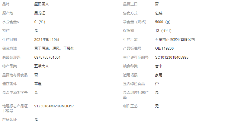 五常市蟹田国米业有限公司发布的官方溯源正宗蟹田国米五常大米稻花香2号10斤新米东北长粒香真空图集库