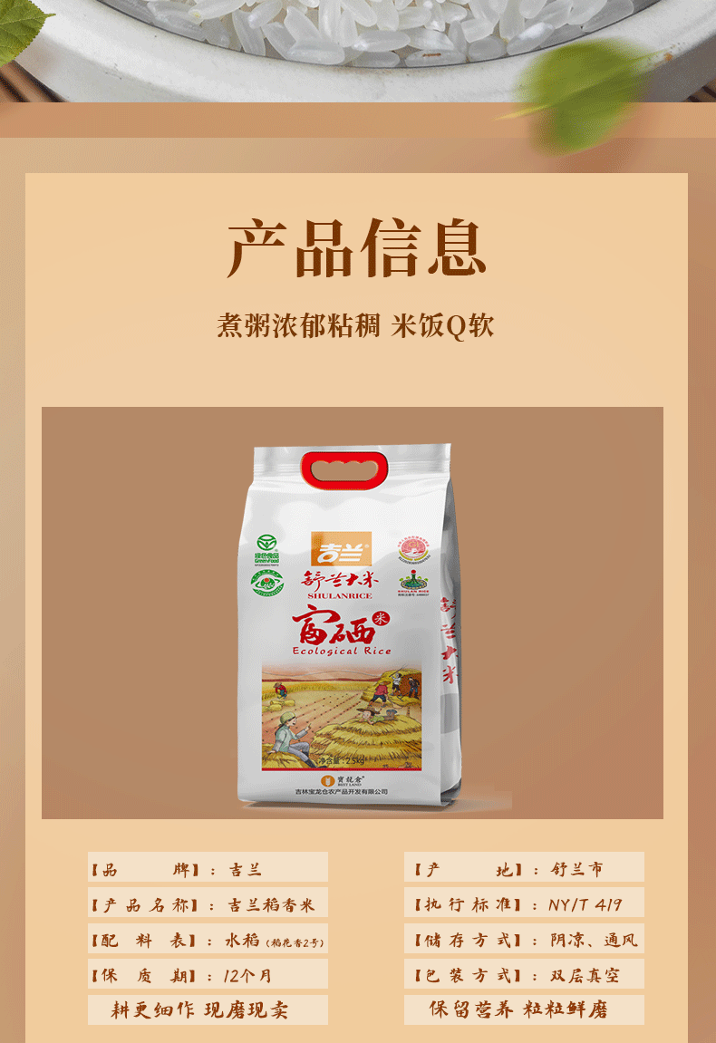 吉林宝龙仓农产品开发有限公司发布的东北舒兰大米24年新米富硒米吉兰大米米饭Q弹入口甘甜松软油亮图集库