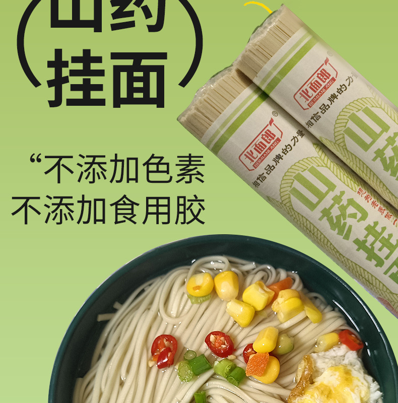 新乡市北面郎食品有限公司发布的北面郎铁棍山药挂面500g现货挂面源头厂家营养丰富老少皆宜代餐面图集库