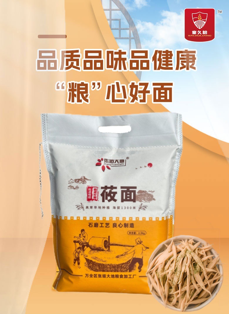 张家口塞久粮燕麦食品有限公司发布的包邮5斤粉粗粮莜面鱼鱼栲栳栳工厂生产直销坝上纯莜面燕麦面图集库