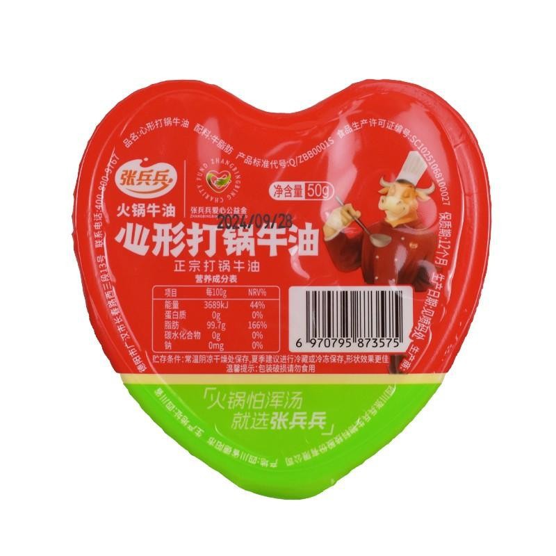 重庆赵鑫堃商贸有限公司发布的张兵兵心形打锅牛油50g120个整箱重庆火锅牛油小块单个爱心白牛油图集库